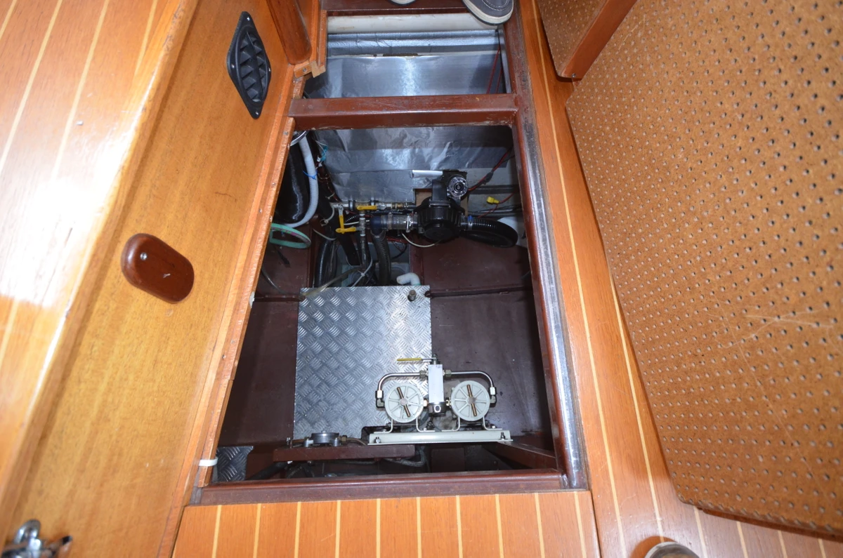 Tankvolumen Diesel: 1040 ltr. (880 ltr. Haupttank im Kiel, 100 ltr. Tagestank, 3 x 20 Liter Reserve-Kanister)